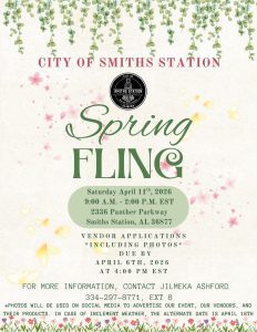 Smith’s Station Annual Spring Fling will be held tomorrow, April 11th, 2026, from 9:00 A.M. to 2:00 P.M. EST. Come and visit us to check out all the wonderful vendors!