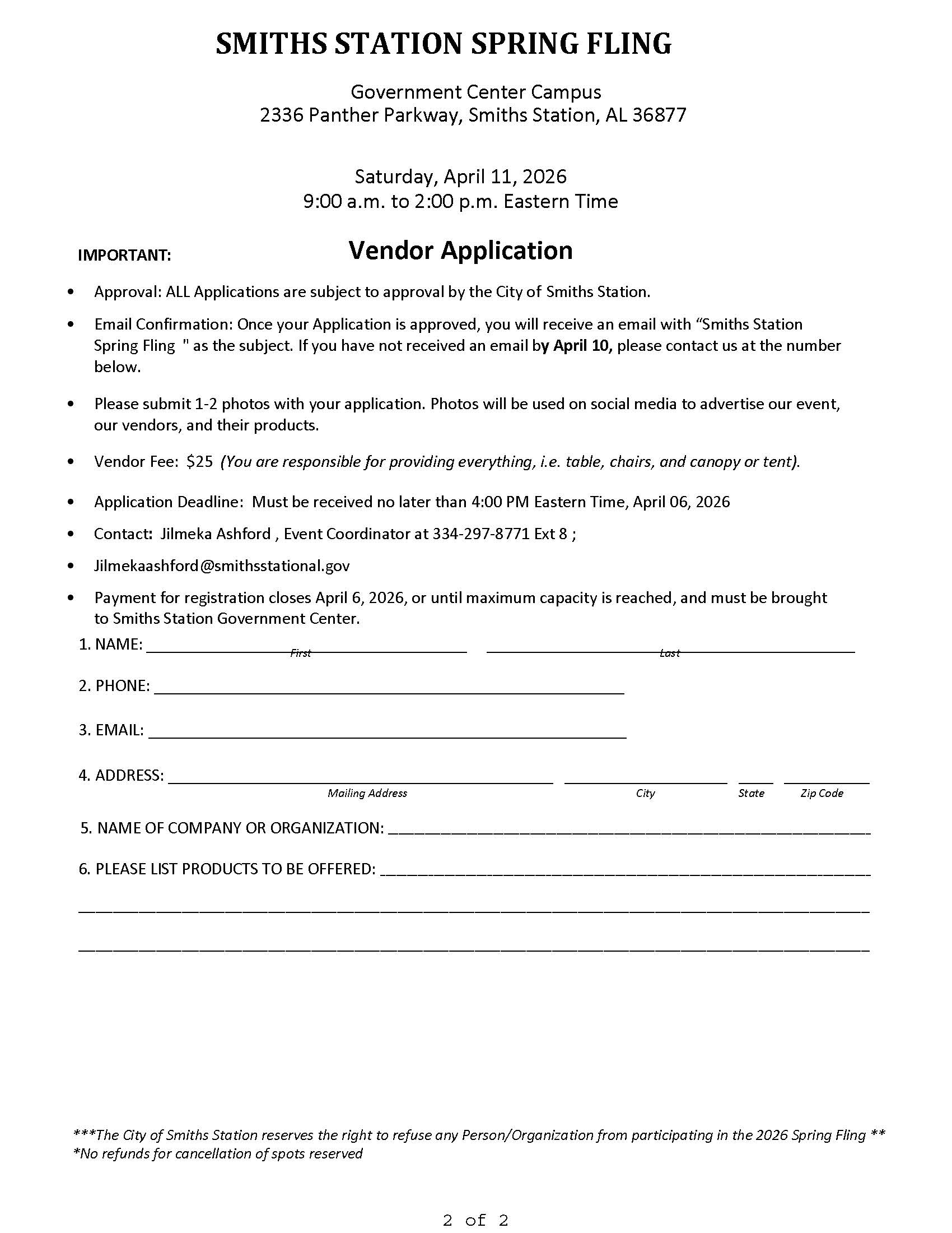 City of Smiths Station Spring Fling 2026